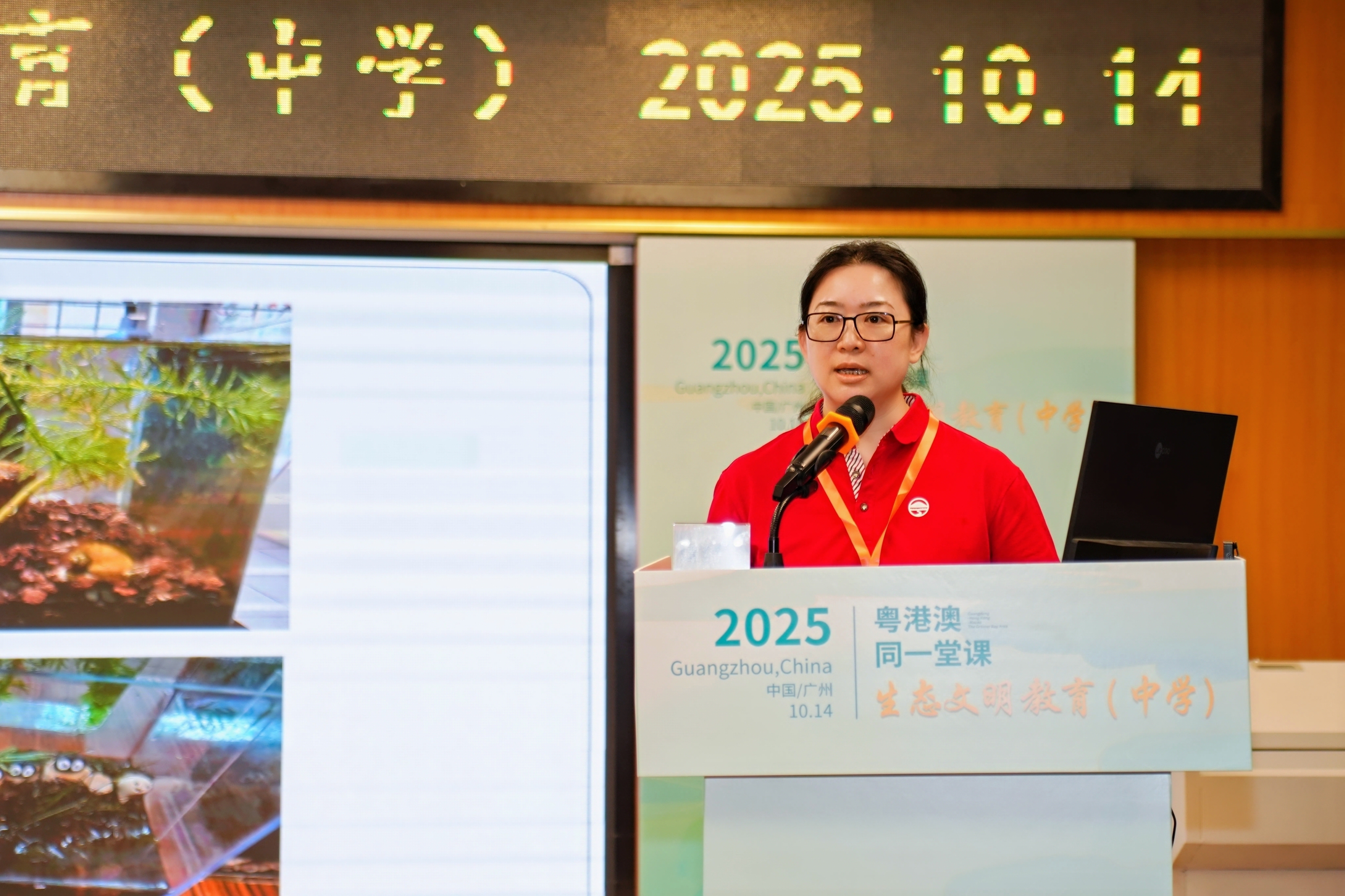 澳门岭南中学谭绮奇老师分享了学校通过“生态瓶制作”等实践活动,将生态文明教育融入多学科教学的做法。该校高一学生以小组合作形式设计并维护生态瓶。学生们观察其中的生物互动,撰写报告并展示成果,在实践过程中理解生态平衡与生物多样性。