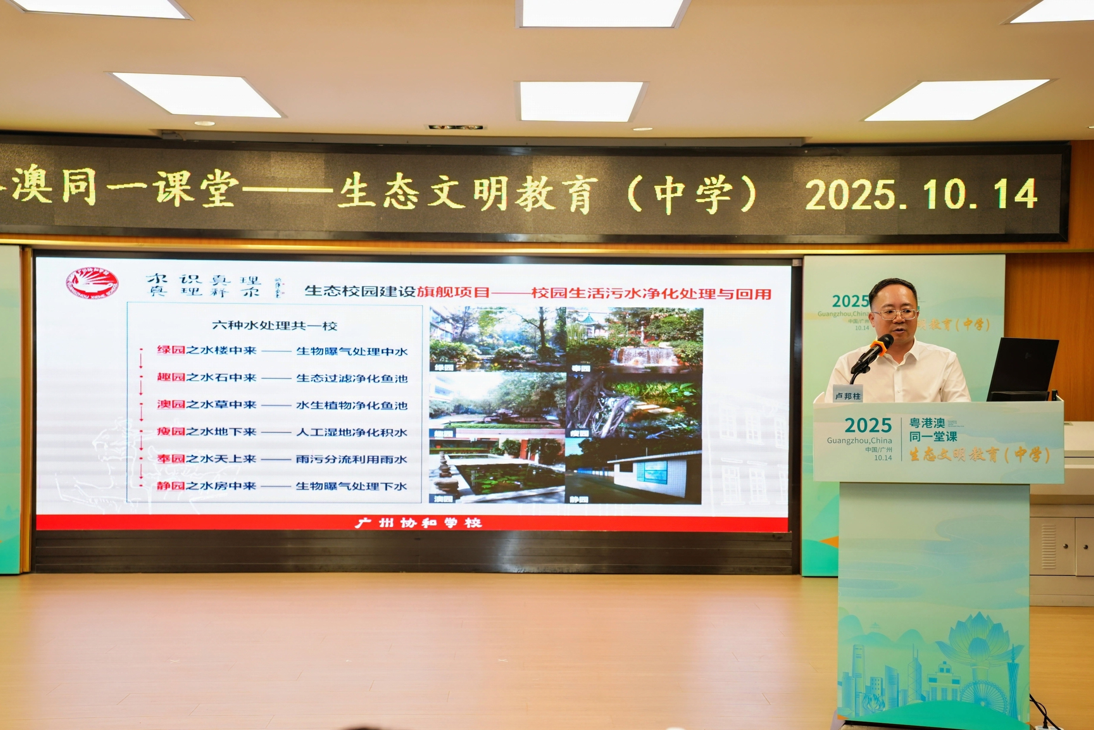 现场,来自粤港澳三地的学校分享了其生态文明教育的实践经验。广州协和学校校长卢邦柱介绍,该校于2003年提出“构建协和教育生态文化,培养可持续发展人才”,并长期坚持体验式教育。